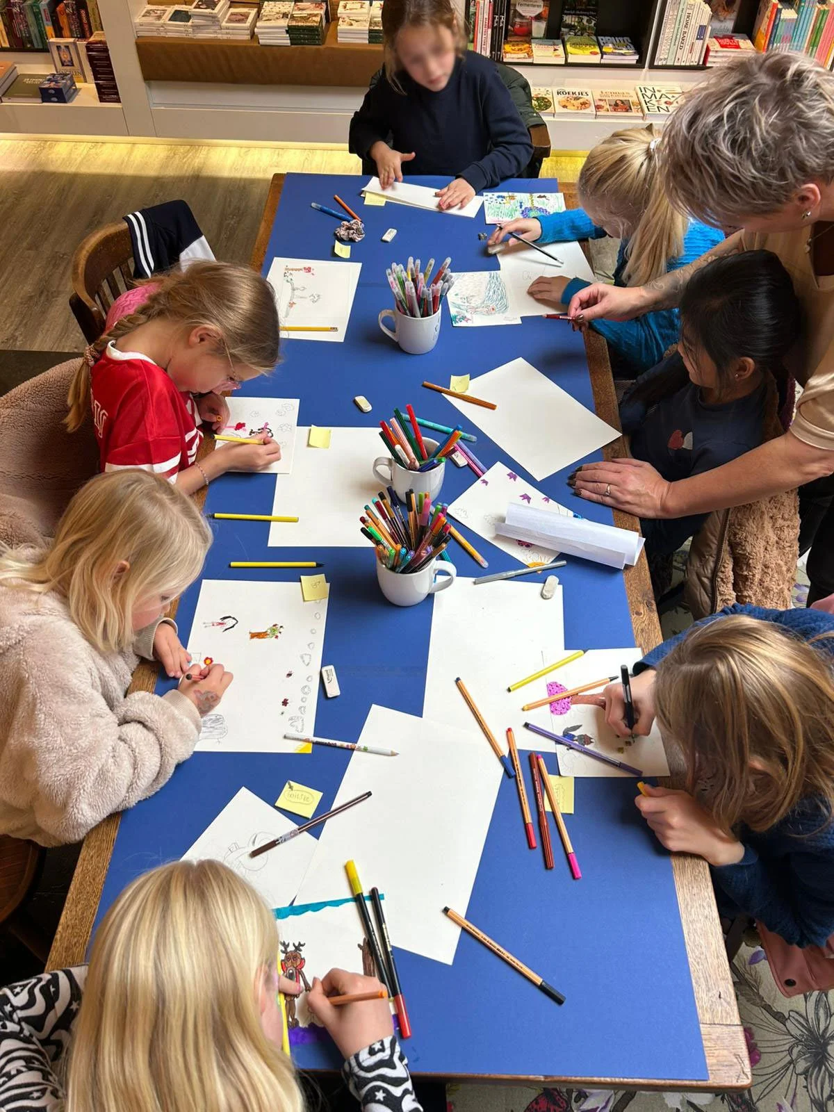 Daarna gaan de kinderen zelf aan de slag tijdens de miniworkshop, waarin ze op hun eigen manier een vervolg schrijven of tekenen.